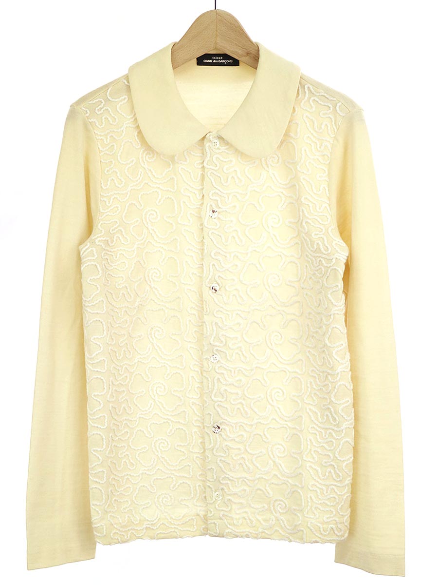 97AW フラワーエンブロイダリーウールジャージーラウンドカラーシャツ